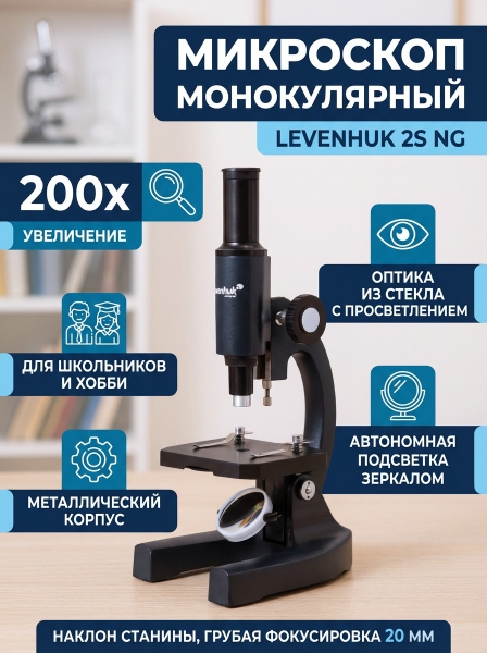 Микроскоп монокулярный Levenhuk 2S NG - БрендСтрана бренда: США Премиальность бренда:Микроскоп монокулярный Levenhuk 2S NG - Характеристики