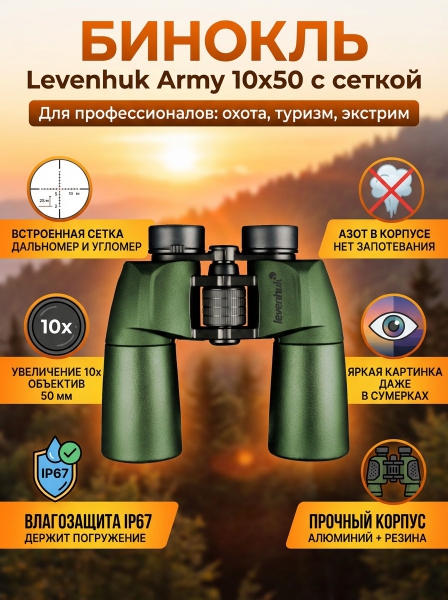 Бинокль Levenhuk Army 10x50 с сеткой - ДоставкаДоставка по Москве: бесплатно, 1-2 дняДоставка по Санкт-Петербургу: бесплатно, 2-3 дня Доставка по России: стоимость уточняйте у оператора. Бинокль Levenhuk Army 10x50 с сеткой - Отзывы0.0