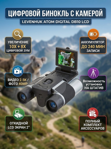 Бинокль цифровой Levenhuk Atom Digital DB10 LCD - ДоставкаДоставка по Москве: бесплатно, 1-2 дняДоставка по Санкт-Петербургу: бесплатно, 2-3 дня Доставка по России: стоимость уточняйте у оператора. Бинокль цифровой Levenhuk Atom Digital DB10 LCD - Отзывы5.0