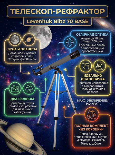 Телескоп рефракторный Levenhuk Blitz 70 BASE - Преимущества