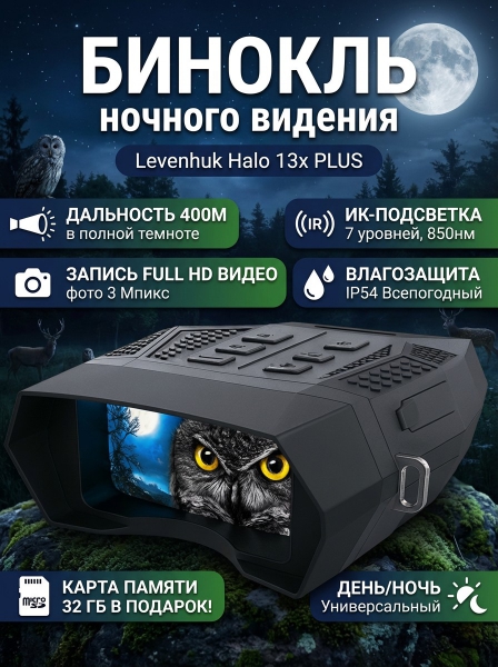 Бинокль цифровой ночного видения Levenhuk Halo 13x PLUS - Преимущества