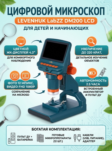 Микроскоп цифровой Levenhuk LabZZ DM200 LCD - ДоставкаДоставка по Москве: бесплатно, 1-2 дняДоставка по Санкт-Петербургу: бесплатно, 2-3 дня Доставка по России: стоимость уточняйте у оператора. Микроскоп цифровой Levenhuk LabZZ DM200 LCD - Отзывы0.0