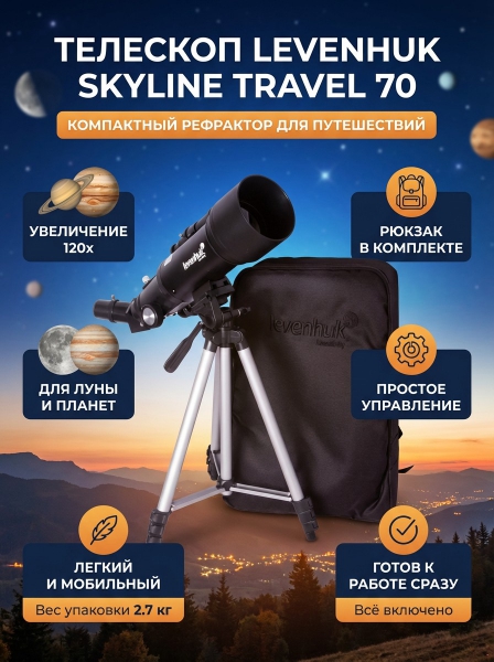 Телескоп Levenhuk Skyline Travel 70 – это отличный выбор для путешественников и любителей активного образа жизни.