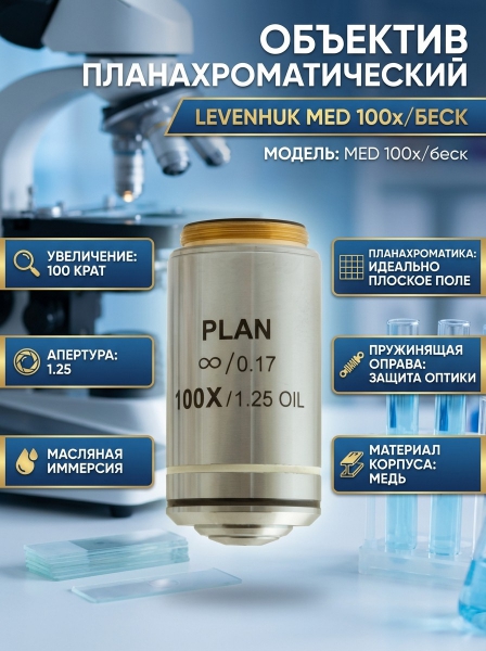 Объектив планахроматический Levenhuk MED 100x/беск