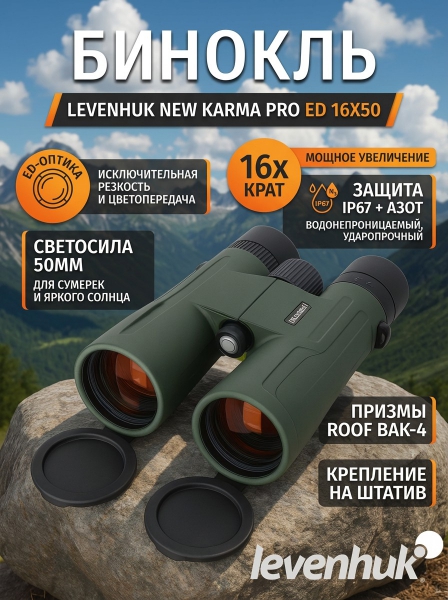Бинокль Levenhuk New Karma PRO ED 16x50 - Преимущества