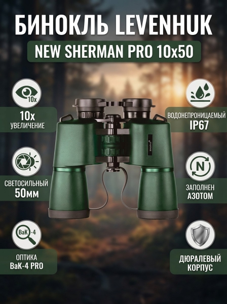 Бинокль Levenhuk New Sherman PRO 10x50 - ДоставкаДоставка по Москве: бесплатно, 1-2 дняДоставка по Санкт-Петербургу: бесплатно, 2-3 дня Доставка по России: стоимость уточняйте у оператора. Бинокль Levenhuk New Sherman PRO 10x50 - Отзывы0.0