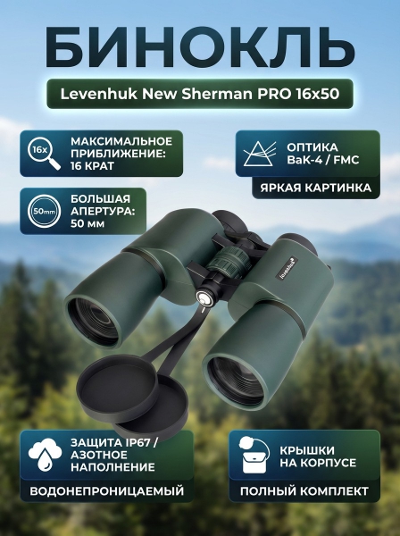 Бинокль Levenhuk New Sherman PRO 16x50 - ДоставкаДоставка по Москве: бесплатно, 1-2 дняДоставка по Санкт-Петербургу: бесплатно, 2-3 дня Доставка по России: стоимость уточняйте у оператора. Бинокль Levenhuk New Sherman PRO 16x50 - Отзывы0.0