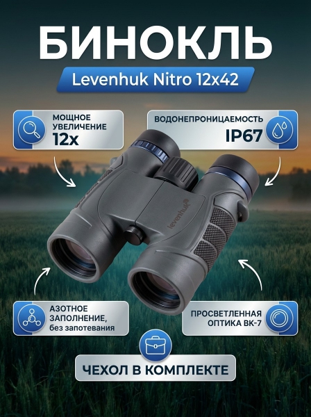 Бинокль полевой Levenhuk Nitro 12x42 - БрендСтрана бренда: США Премиальность бренда:Бинокль полевой Levenhuk Nitro 12x42 - Характеристики