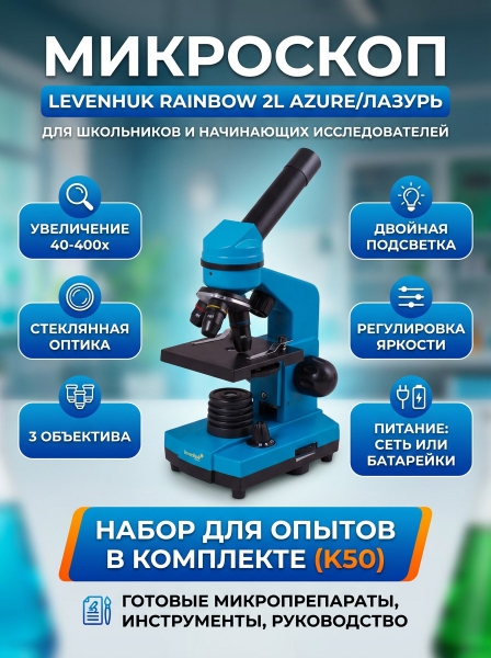 Микроскоп монокулярный Levenhuk Rainbow 2L Azure/Лазурь - ДоставкаДоставка по Москве: бесплатно, 1-2 дняДоставка по Санкт-Петербургу: бесплатно, 2-3 дня Доставка по России: стоимость уточняйте у оператора. Микроскоп монокулярный Levenhuk Rainbow 2L Azure/Лазурь - Отзывы0.0