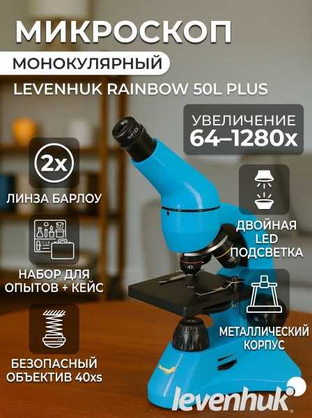 Микроскоп монокулярный Levenhuk Rainbow 50L PLUS Azure/Лазурь - Преимущества