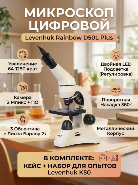 Микроскоп Levenhuk Rainbow D50L Plus 2 Мпикс MoonstoneЛунный камень - ДоставкаДоставка по Москве: бесплатно, 1-2 дняДоставка по Санкт-Петербургу: бесплатно, 2-3 дня Доставка по России: стоимость уточняйте у оператора. Микроскоп Levenhuk Rainbow D50L Plus 2 Мпикс MoonstoneЛунный камень - Отзывы0.0