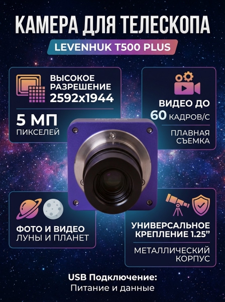 Камера цифровая для телескопа Levenhuk T500 PLUS - Преимущества