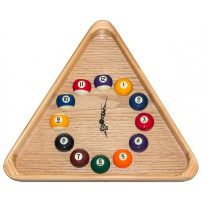 Часы Weekend Треугольные с шарами - ОписаниеТрадиционные настенные часы на бильярдную тематику. Снабжены секундной стрелкой, оснащены кварцевым механизмом.