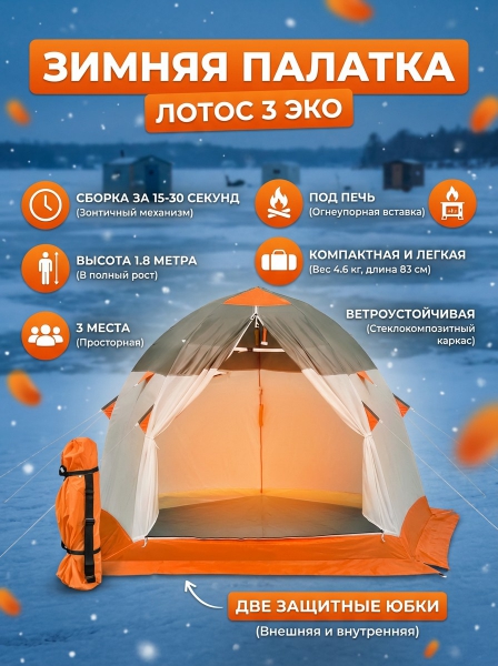 Зимняя палатка Лотос 3 Эко - БрендСтрана бренда: Россия Страна производства: Россия Премиальность бренда:Зимняя палатка Лотос 3 Эко - Характеристики