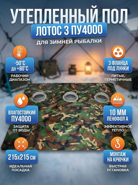 Пол утепленный Лотос 3 ПУ4000 с отверстиями под лунки с фланцами - ДоставкаДоставка по Москве: бесплатно, 1-2 дняДоставка по Санкт-Петербургу: бесплатно, 2-3 дня Доставка по России: стоимость уточняйте у оператора. Пол утепленный Лотос 3 ПУ4000 с отверстиями под лунки с фланцами - Отзывы0.0