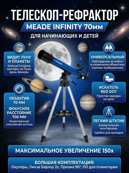 Телескоп рефракторный Meade Infinity 70 мм - Преимущества