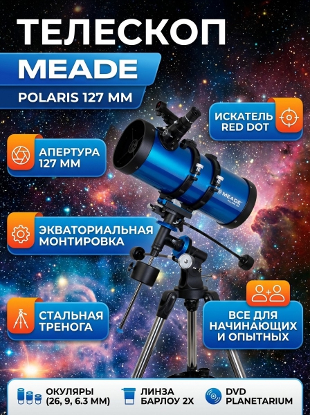 Телескоп рефлекторный Meade Polaris 127 мм - БрендСтрана бренда: КНР Премиальность бренда:Телескоп рефлекторный Meade Polaris 127 мм - Характеристики