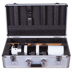 Окуляр трубы находится в наклонном положении – так можно с большим комфортом наблюдать высоко расположенные объекты, например птиц, небо или кроны деревьев. Устанавливается на любой штатив с креплением 1/4'', а штативная площадка может поворачиваться относительно оптической оси. Для ведения объектов при наблюдениях имеется прицельный визир.