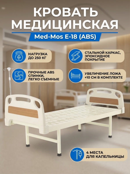 Кровать механическая Мед-Мос Е-18 (ABS) - БрендПремиальность бренда:Посмотреть все функциональные медицинские кровати Мед-Мос (54) Кровать механическая Мед-Мос Е-18 (ABS) - Характеристики