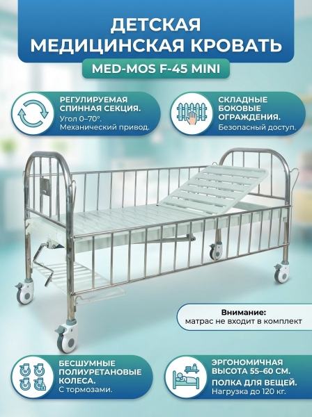 Кровать механическая детская Мед-Мос F-45 mini - ДоставкаДоставка по Москве: бесплатно, 1-2 дняДоставка по Санкт-Петербургу: бесплатно, 2-3 дня Доставка по России: стоимость уточняйте у оператора. Кровать механическая детская Мед-Мос F-45 mini - Отзывы0.0