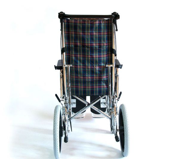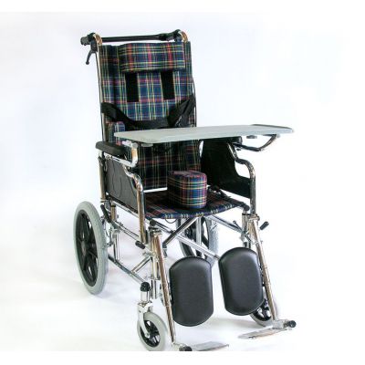 Конструкция складная, рама выполнена из стали с хромовым покрытием. коляска оборудована откидными подлокотниками с мягкими накладками, съемным столиком. Абдуктор, подголовник и боковые фиксаторы для туловища крепятся к креслу с помощью липучек.
