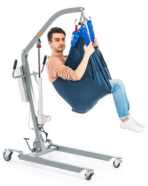 Подъемник электрический с гамаком MET Atlant B - ОписаниеЭлектрический прикроватный подъемник, выполненный на металлической раме, складывающейся для удобства хранения и транспортировки. Раздвижные передние колёсные опоры высотой всего 115 мм для максимальной устойчивости и возможности заезда под низкую мебель.