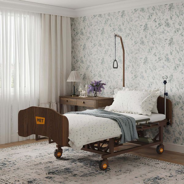Функциональная кровать МЕТ EVA выполнена в домашней, коричневой цветовой гамме и снабжена спинками с контрастной деревянной текстурой ЛДСП, сочетающимися практически с любой домашней мебелью коричневой цветовой гаммы. Помимо того, что кровать не будет контрастировать с Вашей домашней обстановкой, оказываясь эдаким островком больничной казённости, MET EVA не будет оказывать на Вашего родственника негативное психологическое воздействие, помещая больного в ЛПУ посередь родного дома.