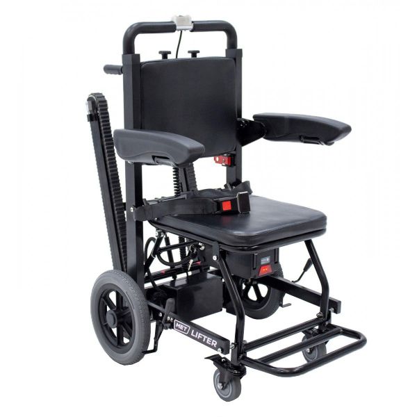Кресло-коляска MET LIFTER (FS111A) - ОписаниеMET ЛИФТЕР (LIFTER) – мобильное подъемное устройство на гусеничном ходу для безопасного перемещения людей с ограниченной мобильностью по лестницам при помощи сопровождающего лица. MET ЛИФТЕР (LIFTER) с легкостью преодолевает угол наклона лестницы 35°.