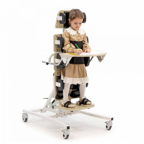 Особенности: Регулируемая конструкция: благодаря возможности регулировки подголовника, высоту можно без труда настроить в соответствии с ростом ребенка Надежная фиксация: ремни для фиксации стоп, икр, поясницы, плеч, а также регулируемые боковые фиксаторы гарантируют безопасность, надежно удерживая ребенка в правильном положении Мобильность: колеса обеспечивают удобное перемещение устройства, а система тормозов гарантирует его устойчивость и надежную фиксацию в нужном положении Дополнительные аксессуары: Столик, подголовник, мягкие накладки