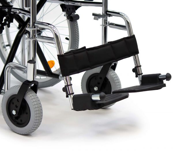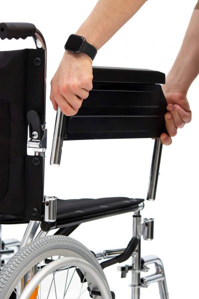 | Кресло-коляска MET TRANSIT 150 - ОписаниеМеханическая инвалидная коляска МЕТ TRANSIT 150 создана для комфортного передвижения даже в тесных пространствах. Её компактная конструкция позволяет легко проходить через узкие дверные проёмы и удобна для использования в малогабаритных квартирах. Дополнительный плюс — скошенные подлокотники, позволяющие вплотную придвигаться к столу, сохраняя правильную осанку.
