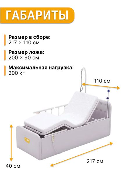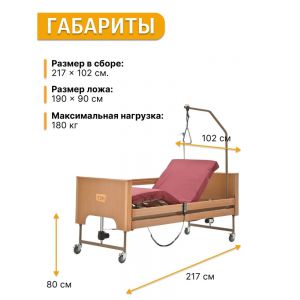 Кровать оборудована интуитивно понятной системой управления - проводной пульт позволяет плавно регулировать высоту изголовья и ножной части, обеспечивая максимальный комфорт для пациента. Легкие алюминиевые ограждения с быстрым механизмом опускания обеспечивают удобный доступ к пациенту. Конструкция рассчитана на нагрузку до 200 кг.