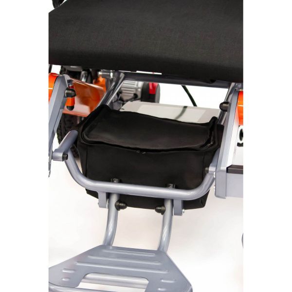 Коляска оснащена небольшой сумкой для хранения вещей или верхней одежды, расположенной под сидением.