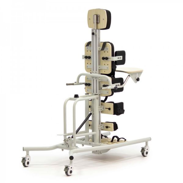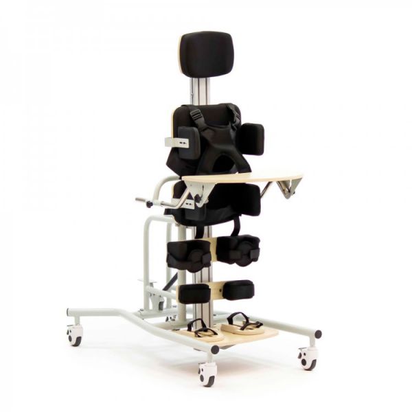 Особенности: Регулируемая конструкция: подходит для детей разного возраста и веса Надежная фиксация: ремни для стоп, икр, бедер и поясницы и боковые регулируемые фиксаторы обеспечивают безопасность, которые надежно удерживают ребенка в правильном положении Мобильность: колеса позволяют легко перемещать устройство, а наличие тормозов позволяет надежно зафиксировать вертикализатор на месте Дополнительные аксессуары: столик, подголовник, мягкие накладки.