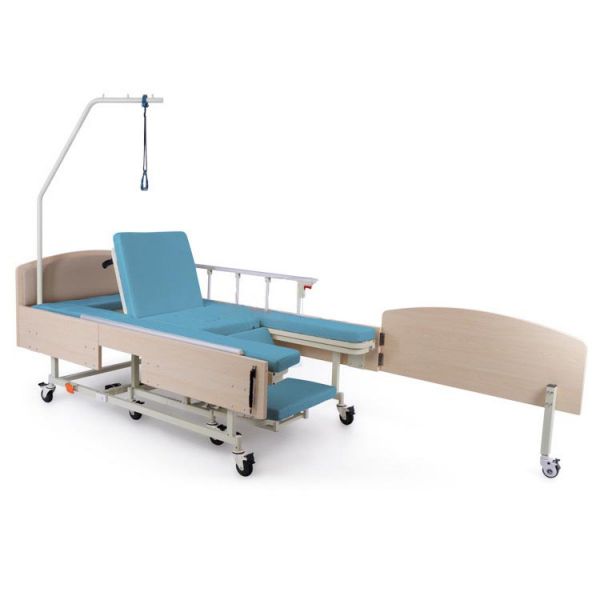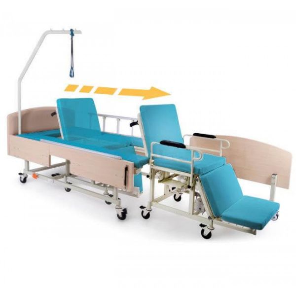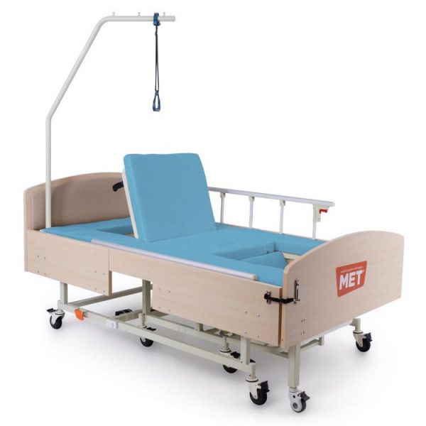 Кровать медицинская электрическая MET NV E50 (INTEGRA ELECTRO) - ОписаниеЭлектроприводная односпальная функциональная кровать MET INTEGRA 3 в 1, шириной 1 м, позволяющая с комфортом осуществлять высадку в кресло каталку для дома и улицы, снабжённое санитарным оснащением