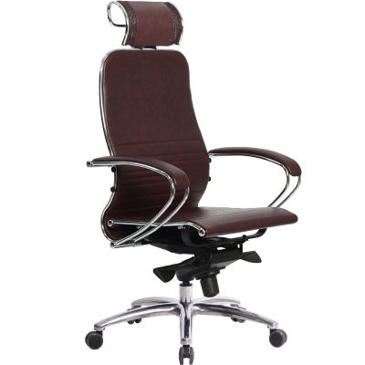 Офисное кресло Метта Samurai K-2.03 темно-бордовое - ОписаниеСомневаетесь? - Посмотрите рейтинг ТОП-10 по категории «Ортопедические кресла»Эргономичное офисное кресло с синхромеханизмом качания «MultiBlock» - раздельное синхронное отклонение спинки и сиденья кресла. Изделие соответствует требованиям Европейского Союза по безопасности эксплуатации и экологичности, отвечает требованиям технических регламентов Таможенного союза ЕврАзЭС. Съемный 3D подголовник из перфорированного износостойкого материала NewLeather, обеспечивает идеальную поддержку головы в любом положении. Абсолютно эргономичная форма спинки соответствует анатомической форме тела человека. Новая эргономичная форма спинки, помимо улучшения эргономических свойств, придает креслу устойчивость при максимальном отклонении. Двухзонная регулировка подпора поясницы обеспечивает идеальную поддержку спины независимо от комплекции сидящего. Сверхпрочный стальной каркас спинки, покрытый зеркальным хромом и сиденье мягкое объемное из материала NewLeather с хромированным молдингом на столярном каркасе . Синхромеханизм качания MultiBlock, благодаря раздельному синхронному отклонению спинки и сиденья, позволяет телу периодически разгибаться, что улучшает кровоток и разминает мышцы спины. Смещенный вперед центр качания позволяет стопам сидящего, при отклонении кресла, оставаться на полу, сосуды не пережимаются - сохраняется ощущение легкости в ногах. Регулировка глубины сиденья с помощью специального слайдера, обеспечивает эргономически правильную посадку пользователя в кресле, создавая дополнительный комфорт и удобство. Предусмотрена возможность фиксации глубины сиденья в пяти позициях. Противооткатные полиуретановые ролики обеспечивают дополнительную безопасность эксплуатации кресла. Без нагрузки - предотвращают случайное перемещение кресла, при сидении - позволяют легко перемещаться. Ролики долговечные, бесшумные, не оставляют следов и царапин на полу, увеличенного диаметра (60 мм).