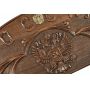 Нарды резные с бронзой Mirzoyan am018 «Россия» - ОписаниеНарды резные с бронзой Mirzoyan am018 «Россия». Богатая и красивая резьба - 100% ручная работа. На обратной стороне имеется резное поле для шашек, размер клетки - 3 см. В комплект входит: чехол, 32 фишки, 2 кубика