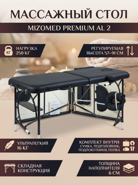 Массажный складной стол Mizomed Premium AL 2 black - Обзор ТОП-10 лучших столов для массажа 2025 🏆: Обзор и рейтинг