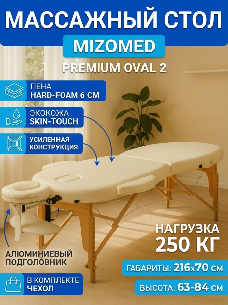 Складной массажный стол Mizomed Premium Oval 2 cream - Обзор ТОП-10 лучших столов для массажа 2025 🏆: Обзор и рейтинг
