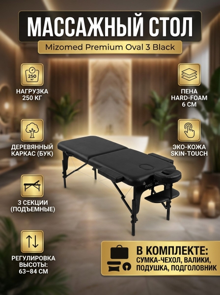 Складной массажный стол Mizomed Premium Oval 3 black - Обзор ТОП-10 лучших столов для массажа 2025 🏆: Обзор и рейтинг