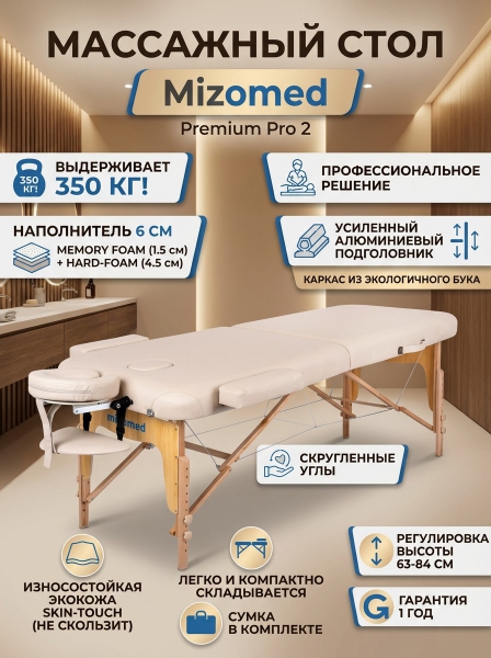 Складной массажный стол Mizomed Premium Pro 2 beige - ДоставкаДоставка по Москве: бесплатно, 1-2 дняДоставка по Санкт-Петербургу: бесплатно, 2-3 дня Доставка по России: стоимость уточняйте у оператора. Складной массажный стол Mizomed Premium Pro 2 beige - Отзывы0.0