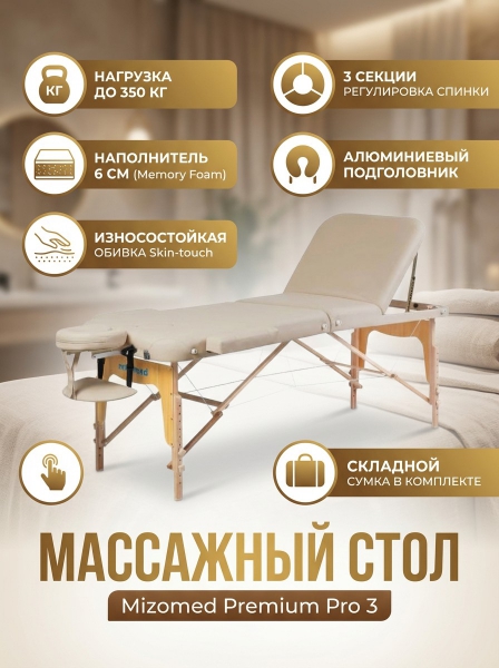 Складной массажный стол Mizomed Premium Pro 3 beige - Обзор ТОП-10 лучших столов для массажа 2025 🏆: Обзор и рейтинг