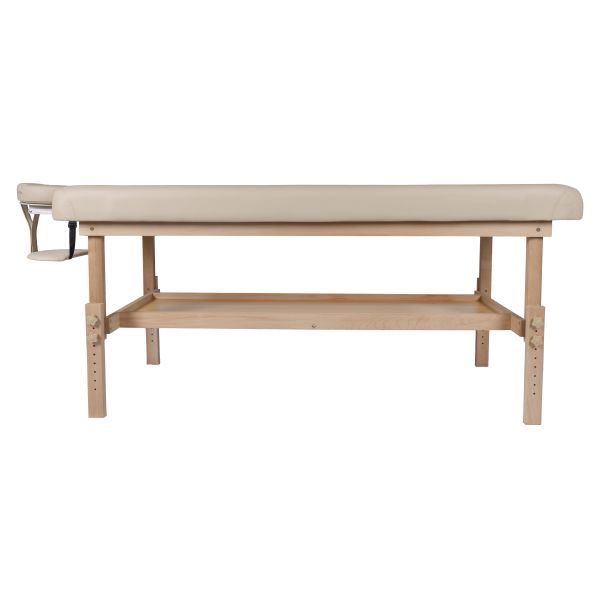 Массажный стол Mizomed Stationary Pro 1 - ОписаниеСомневаетесь? - Посмотрите рейтинг ТОП-10 по категории «Столы для массажа»Массажный стол Stationary Pro 1 – идеальный выбор для профессионалов и любителей массажа. Этот механический массажный стол с прочным деревянным каркасом выдерживает нагрузку до 300 кг, что гарантирует его надежность и долговечность. Механическая регулировка высоты с восемью уровнями (от 70 до 89 см) обеспечивает удобство для массажиста любого роста. Стол имеет одну секцию без регулировки спинки и ножной части, что делает его простым и удобным в использовании. С длиной 186 см и шириной 76 см, стол обеспечивает достаточно места для комфортного размещения клиента. Обивка из высококачественной PU кожи устойчива к износу и легко очищается, что упрощает уход за столом. Мягкое наполнение из пенополиуретана толщиной 7 см гарантирует максимальный комфорт для клиента. Вырез для лица и съёмный подголовник диаметром 28 см добавляют удобства в использовании.