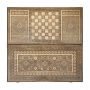 Узоры на внешних поверхностях доски напоминают о дорогих коврах, которые можно встретить во дворцах, ведь это изделие для достойных людей, знающих цену красоте. Изнутри также имеется геометрический узор с прямыми углами и ровными линиями, которые подчёркивают центральную часть и каждую отдельную ячейку. Чтобы безопасно переносить нарды, предусмотрен чехол из мягкой ткани в комплекте.