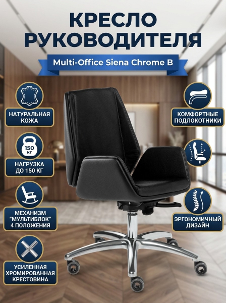 Кресло Multi-Office Siena Chrome B, кожа черная - Обзор ТОП-10 лучших ортопедических кресел 2025 🏆: Обзор и рейтинг