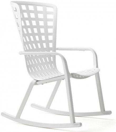 Кресло-качалка Nardi Folio с подушкой (голубой), цвет белый - ОписаниеFolio - это инновационное расслабляющее кресло, регулируемое в двух положениях, предназначенное для уличного использования. Изготовлено из перерабатываемой стекловолоконной смолы. Кресло Folio может быть выполнено с фиксированным основанием либо на ножках-полозьях как романтическое кресло-качалка. Основная конструкция кресла сделана из одного перфорированного стекловолоконного листа (отсюда и название на итальянском языке "folio"), украшенного квадратным узором. Особенностью кресла является его изогнутый дизайн, не требующий каких-либо связующих элементов между сидением и спинкой.