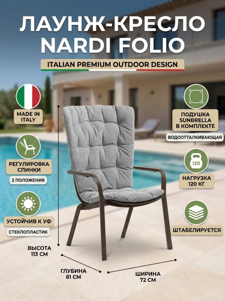Лаунж-кресло пластиковое с подушкой Nardi Folio табак, серый - БрендСтрана бренда: Италия Страна производства: Италия Премиальность бренда:Лаунж-кресло пластиковое с подушкой Nardi Folio табак, серый - Характеристики