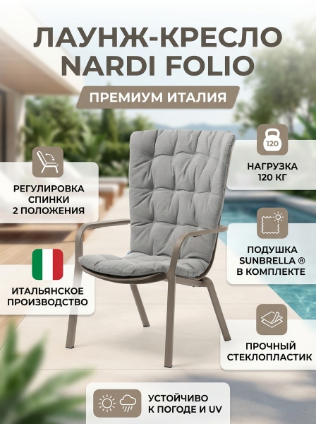 Лаунж-кресло пластиковое с подушкой Nardi Folio тортора, серый - ДоставкаДоставка по Москве: бесплатно, 1-2 дняДоставка по Санкт-Петербургу: бесплатно, 2-3 дня Доставка по России: стоимость уточняйте у оператора. Лаунж-кресло пластиковое с подушкой Nardi Folio тортора, серый - Отзывы0.0