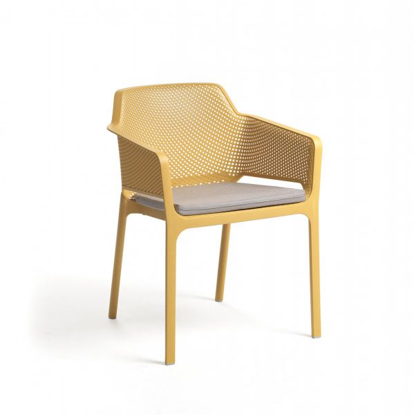 Net – это моноблочная модель из стеклопластика с перфорированным рисунком, который равномерно распределен по трехмерной поверхности сиденья. Материалы не подвержены воздействию УФ-излучения, благодаря этому кресло долго сохраняет свой первоначальный вид и не выцветает на солнце. Кресло оснащено нескользящими накладками на ножках, поэтому его можно разместить возле бассейна, а также оно может штабелироваться, что облегчает его хранение.