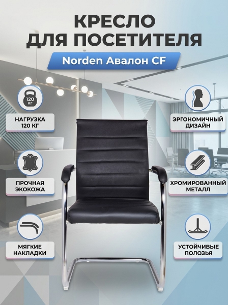 Кресло для посетителя Norden Авалон CF - ОписаниеСомневаетесь? - Посмотрите рейтинг ТОП-10 по категории «Ортопедические кресла»Кресло для посетителя из экокожи черного цвета. Стильный дизайн кресла подойдёт для любого интерьера офиса.
