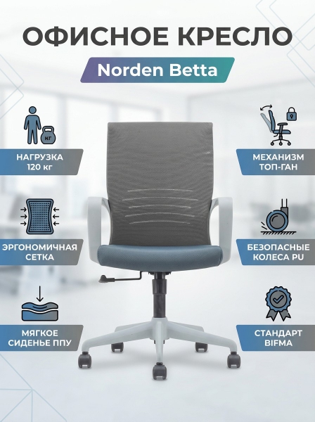 Кресло офисное Norden Betta CH-223B-HS - Обзор ТОП-10 лучших ортопедических кресел 2025 🏆: Обзор и рейтинг